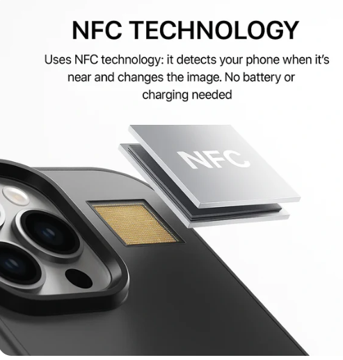 This is the coolest phone case I’ve ever owned. I use it to display my logo for work and it’s a great conversation starter. The NFC tap is smooth and updating designs takes seconds. Ava C. – Verified Buyer